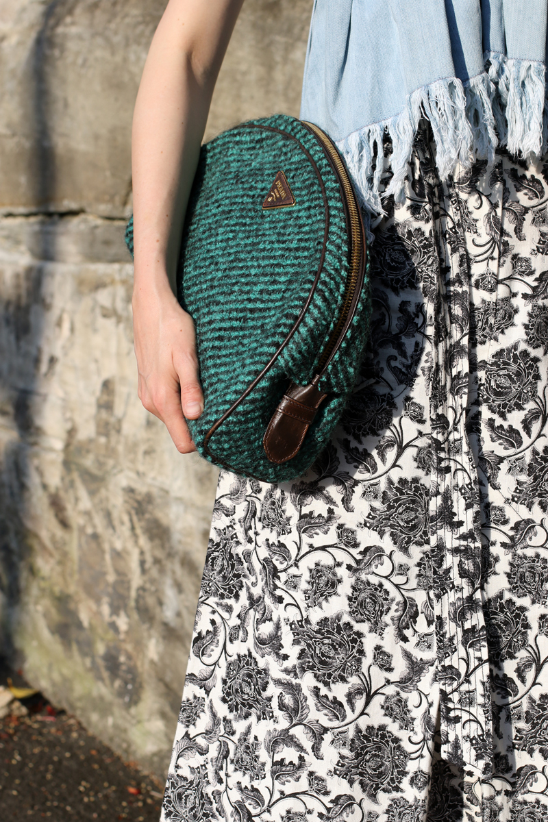 I always love mixing textures like linen and denim. Top it off with a wool clutch and leather heels and you have yourself an unexpectedly cool spring combo…