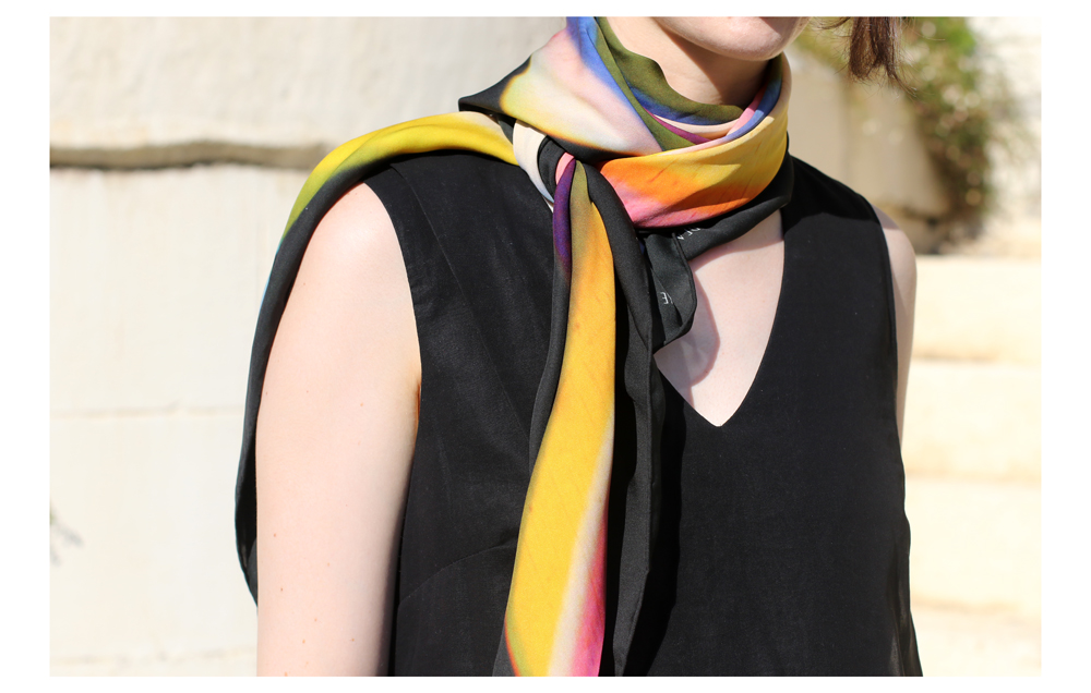 Just a touch of vibrant colour thanks to Deadly Ponies’ ‘Rainbow Dance’ scarf, created in honour of NZ artist Len Lye…