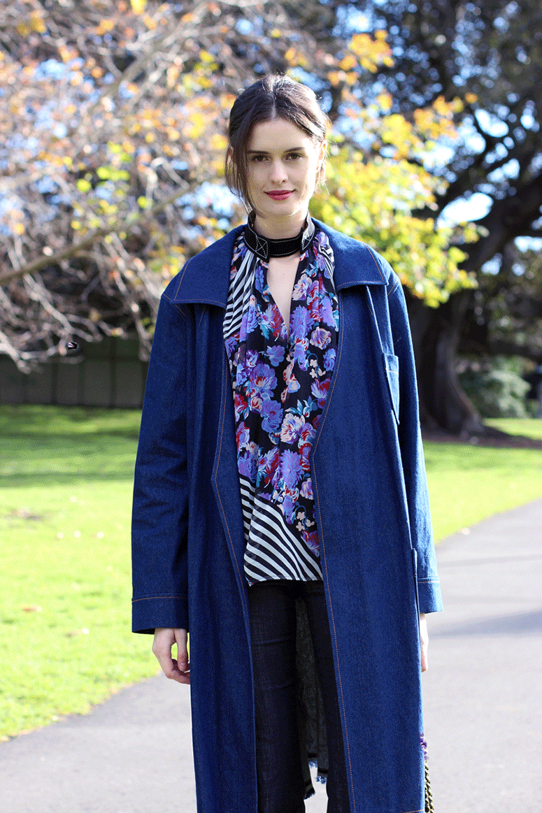 Top and Coat, Karen Walker. Jeans, Citizens of Humanity. Bag, Chanel. Shoes, Oscar de la Renta.